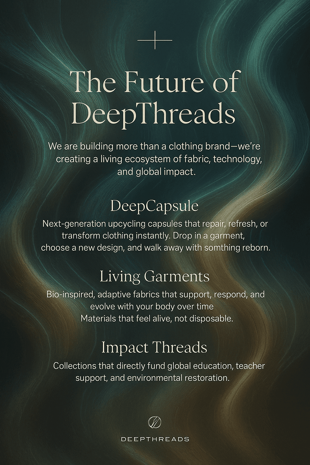 “DeepThreads collaborates with artists and makers whose hands and stories shape each collection. Coming soon: discover our featured artist of the month and more movement-driven designers.”